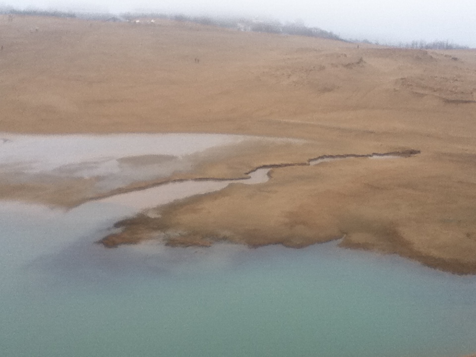 2回目の訪問。だいぶ天気が悪い時で、三原氏は悪かった。前回来た時は気付かなかったけど、砂丘を昇った、高台の向こう側の砂丘の中に大きな水たまりのようなものがあった。砂丘の池なのか、いつもあるのかは不明だけど、オアシスの雰囲気が漂っていた。雨上がりの訪問だったので、砂丘は濡れていてドロドロになった。