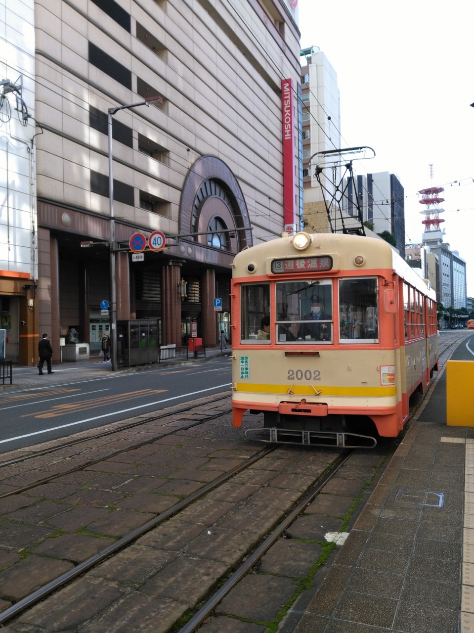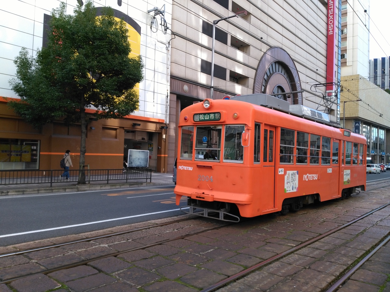 松山市内を走っている路面電車(いよてつ)に乗りました(^^)レトロっぽい車両とそうでない車両、いろいろありますね!色は基本オレンジです。