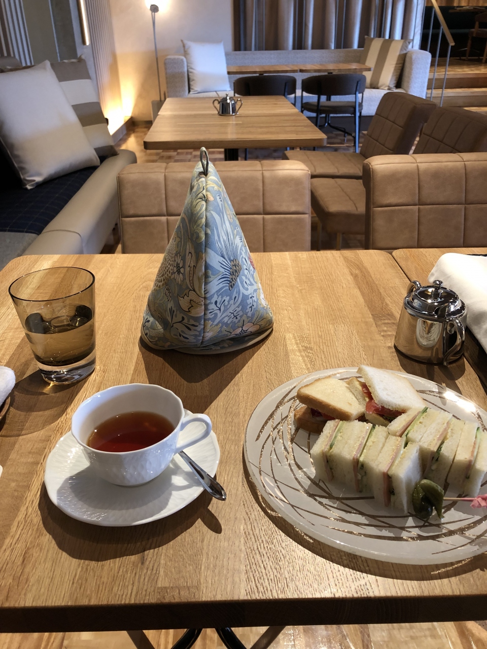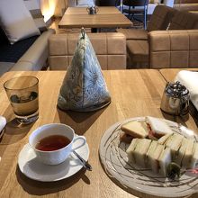 相楽園内にあるカフェです。リニューアルオープンしたみたいで、店内はゆったりしたソファ席で、日本庭園を見下ろせるテラス席もありました。サンドイッチは飲み物付きで、紅茶はポットサービス。きちんとティーコージーもついていました。とてもゆったりとした時間を過ごせました。