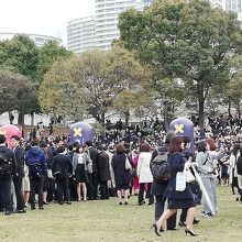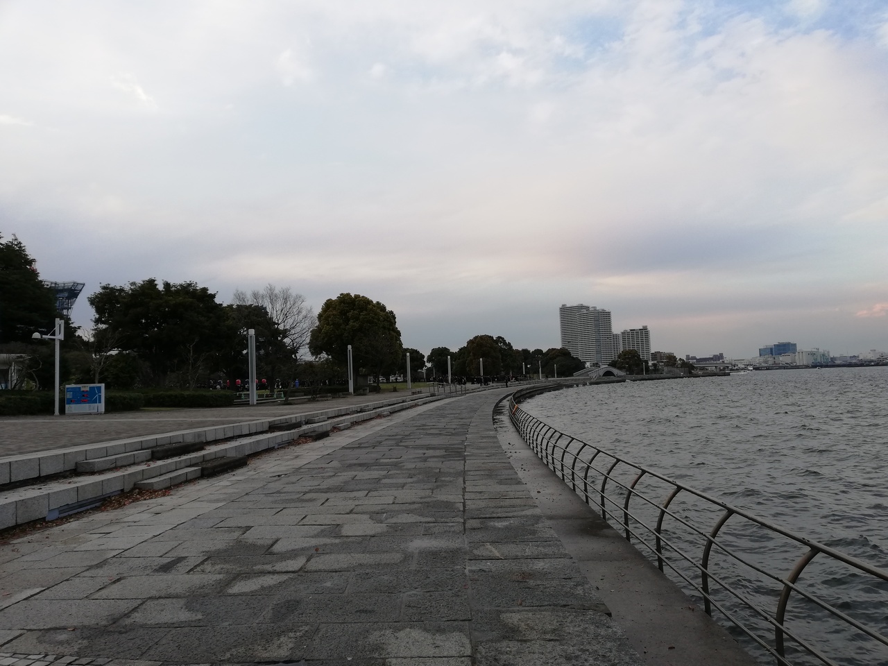 みなとが一望できるだけだでなく、高低差を利用した広い公園。