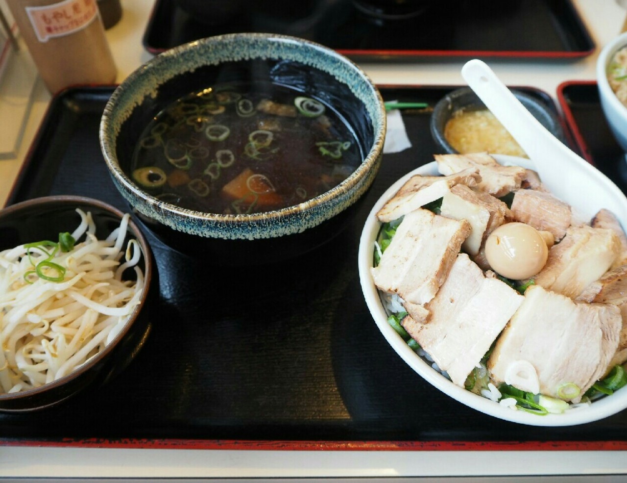 ねぎ塩チャーシュー丼をいただきました。脂がのっているチャーシューがこれでもかというほど乗っていて、ご飯を埋め尽くしています。