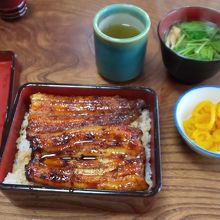 3500円のうな重をいただきました。肝吸いと御新香付。