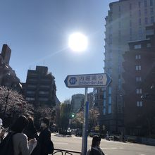 この通り沿いにもところどころ桜も見え、堀も見え、緑も見え散歩にも良いです。