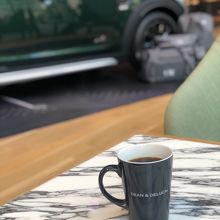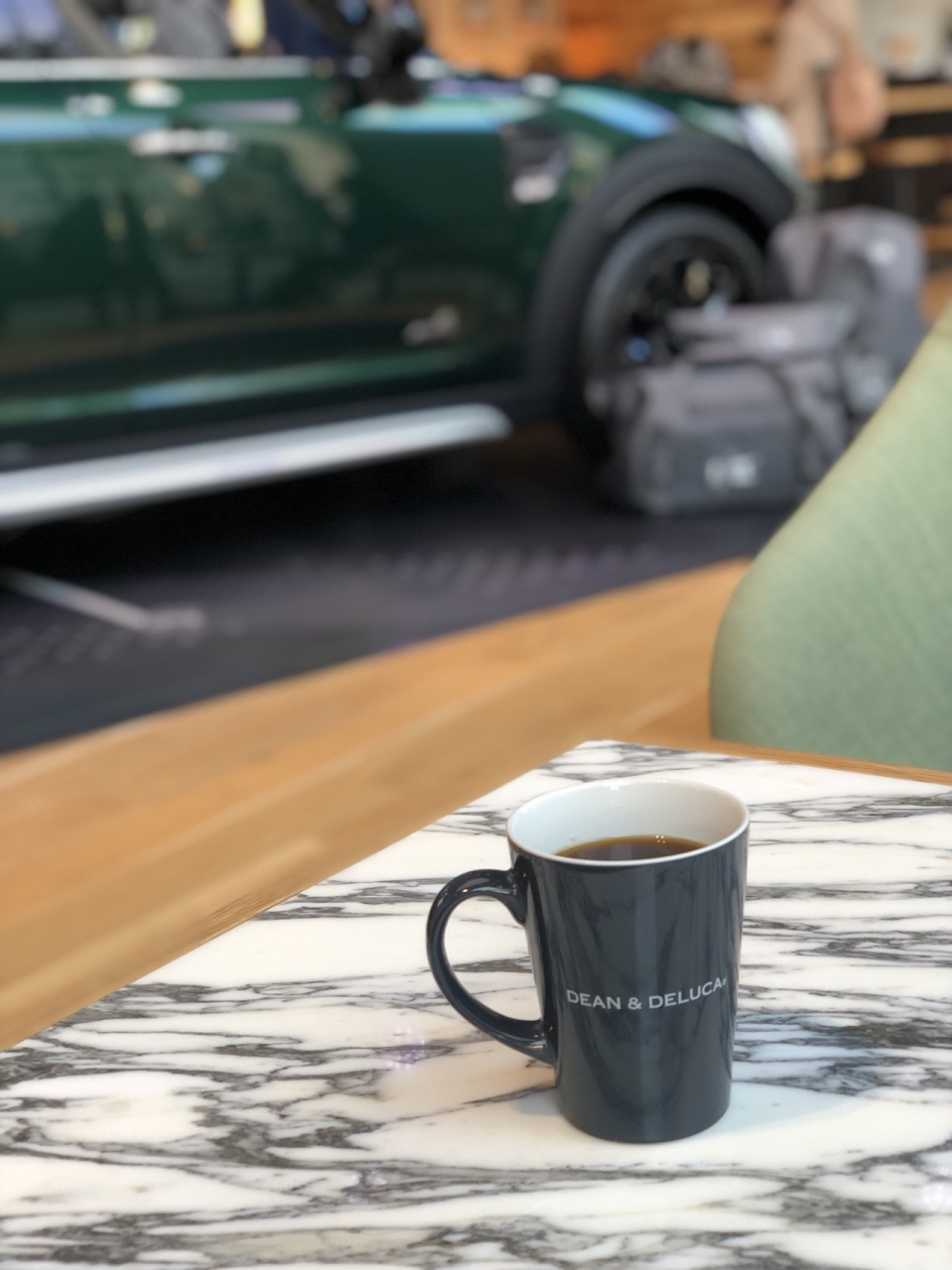 ディーンアンドデルーカのドリンクをBMWの車を、見ながら味わえます。