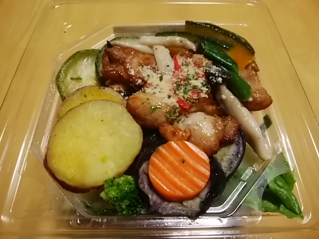 「ごろごろ野菜とチキンの15品目サラダ」594円(税込)と「しゃきしゃき野菜のごま酢サラダ」294円(税込)です。