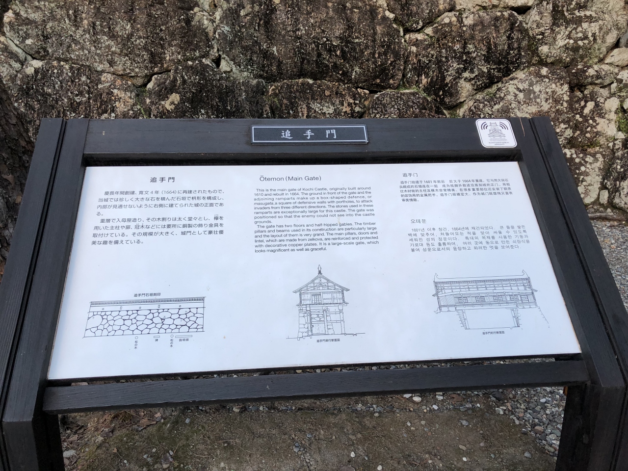 高知城は小ぶりなお城ですが、この追手門は立派だと思います。門の手前の山内一豊像、