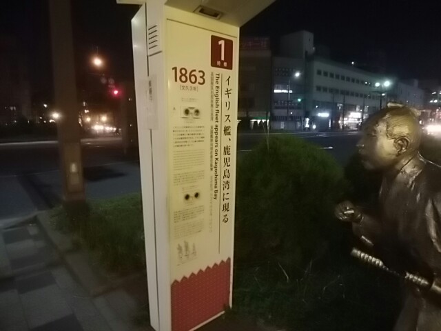 薩英戦争でイギリス艦が鹿児島湾にやってきて、それを見にいく、大山巌、西郷従道、山本権兵衛なんだそうー。