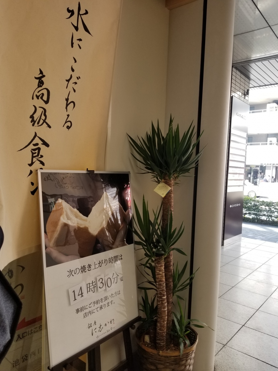 流行りの食パン専門店。銀座の人気店が池袋にも出店したというので行ってみました。西口を出て丸井の先ですが道路に面していないのでちょっとわかりにくいかも…平日の14時、予約なしで伺いましたが運よく14時の販売分を購入することができました。焼き上がりは30分毎のようです。