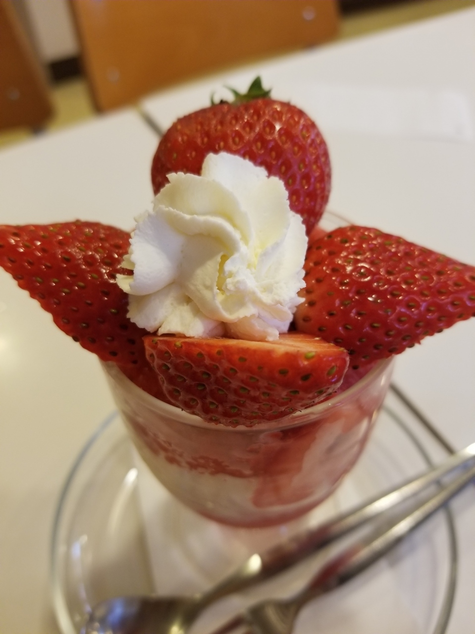 四谷三丁目駅を四谷方面に少し進んだところにあるビルの2階のフルーツパーラー、1階は果物屋さんです。キレイでもお洒落でもないお店ですが、新鮮な果物を使ったデザートは絶品。季節毎に変わるフルーツのパフェは全制覇したくなります。15時からという微妙な開店時間にもかかわらず、15時すぎには階段したまで行列ができていました。