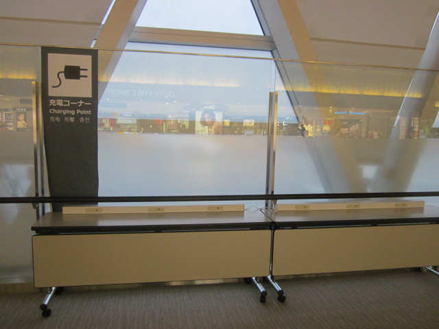 国際線の制限エリア内に関しては、更に酷い惨状で、新しく国際線ターミナルを作った際に、電源席をあまり設置しなかったことが災いしてか、今でも、搭乗ゲート前に、座席のない主としてスマホ充電を想定した電源スポットが、可動式テーブル上に無理やり設けられているような恰好の悪さです。