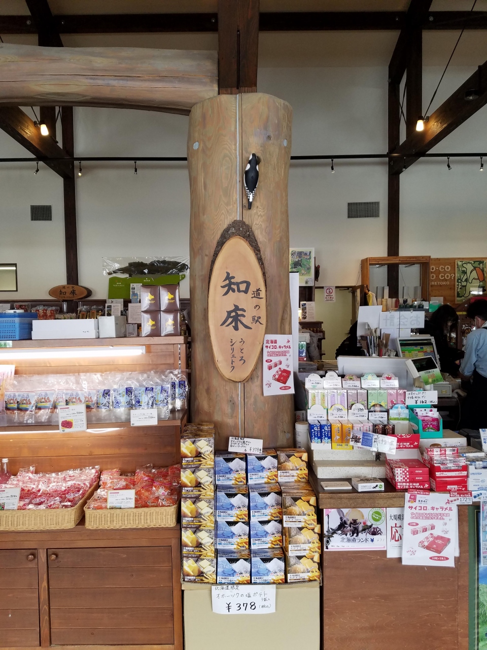 道の駅うとろシリエトクは、国道334号沿い斜里方面からウトロ市街に入るところにあります。休憩とお土産買い物で利用しました。横長な建物内には、海産物豊富なお土産店、レストラン、観光案内所があり施設が充実しています。昼過ぎの時間でしたが駐車場はほぼ満車でした。ここを起点にした体験ツアーもあるようで団体客の姿も目立ちました。