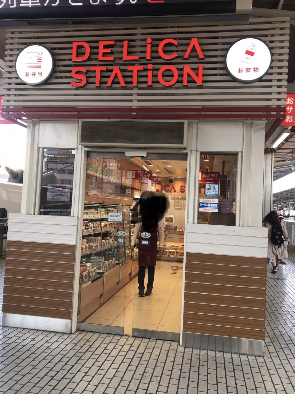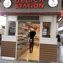 名古屋駅下り(大阪方面)のホームにあるデリカステーションです。7号車付近にあります。お弁当や飲み物、おつまみなどが販売されています。クレジットカードも使えて、大変便利でした。レジも素早くて時間がなくても大丈夫です。