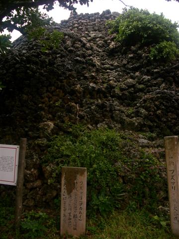 黒島ビジターセンターから宮里海岸に向かう道の途中にある、琉球石灰岩を積み上げて作られた、