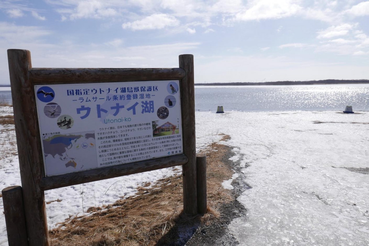 国道36号線を札幌から苫小牧方向へ進んで左側にある道の駅のそばです。駐車場から歩いて道の駅をと通っていくと湖面が見えてきます。緩やかな坂を湖面へ降りて行きました。冬でしたが水面が穏やかで綺麗でした。鳥の鳴き声は聞こえましたが姿は見えませんでした。頻繁に飛行機が上空を通るので若干音がします。