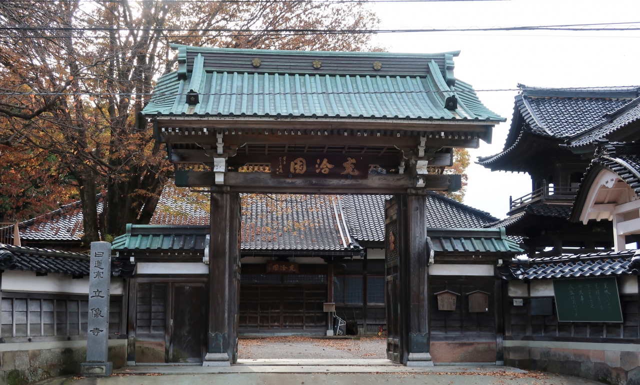 寺町寺院群の中でもその大きさはとても目立つ。本堂と鐘楼堂は金沢市の有形文化財に指定されていて、とくに鐘楼堂は上層が鼓楼、下層が鐘楼の二層になっている珍しいタイプだという。また、門がいい。四脚門だと思うが、高さがあり、時代を問わない威厳を備えている。門の扁額にある「充洽園」はあまねく充たすという意味だろうか。境内には保育園がある。