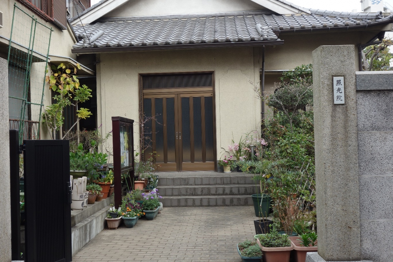 深川あたりのエリアを散策中こちらのお寺へ立ち寄りました。寺院が集まる三好の地区にある浄土宗の寺院で、近くの雲光院の塔頭として創建されたそうです。本殿は寺院というより普通の民家の様な建築で、照光院の表札で辛うじて寺院だと解りました。