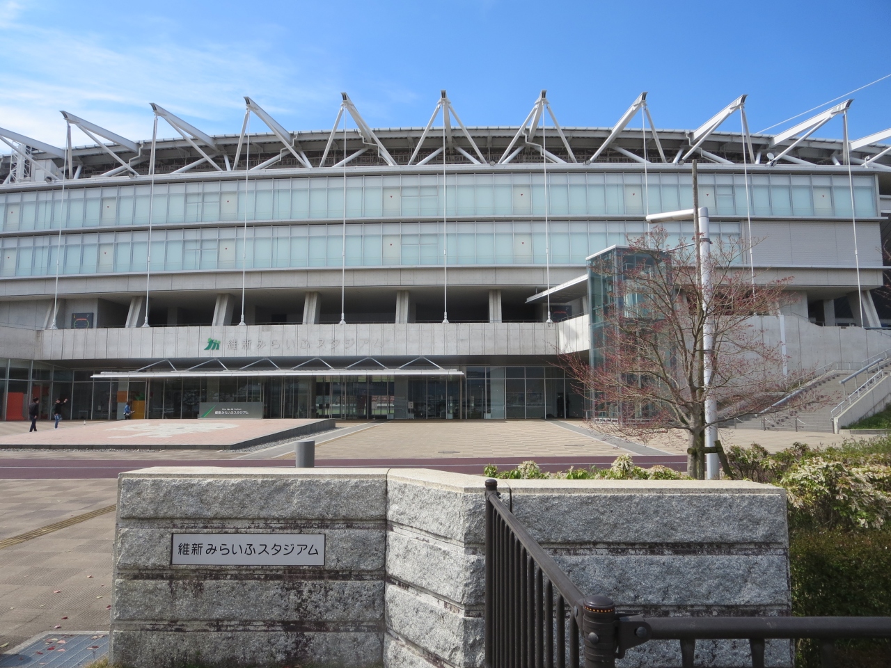 明治維新100年を記念し、山口国体のメイン会場として造られた施設です。メインスタジアムは大きなスタンドのある陸上競技場で、現在はサッカーJ2のレノファ山口の本拠地になっています。スタジアムの外周にはジョギング、ウォーキング道路が設けられ、大勢の人が利用しています。サッカーのゲームがある日はジョギング道は閉鎖されるようです。