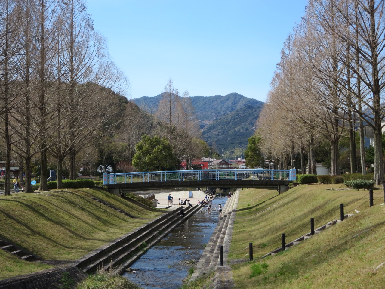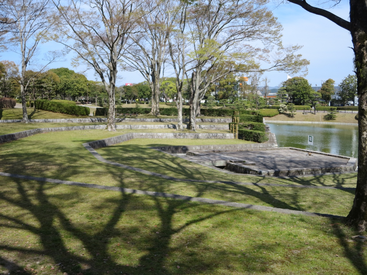 サブグランドも立派なグランドで、周囲には池を配置した野外音楽堂があり、遊歩道もあります。テニスコート、サッカー場、弓道場などの他、山口県スポーツ文化センターや園内を流れる川を利用した子供が水遊び出来る場所も備えられています。