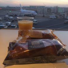 滑走路沿いに面しカウンターがありスマートフォン充電しながら空港内で購入したパンを食べながらオレンジジュースを飲みました。飛行機の中離陸が見え、店内には落ち着いたBGMがある流れていたのでまったりとした時間を過ごせました。