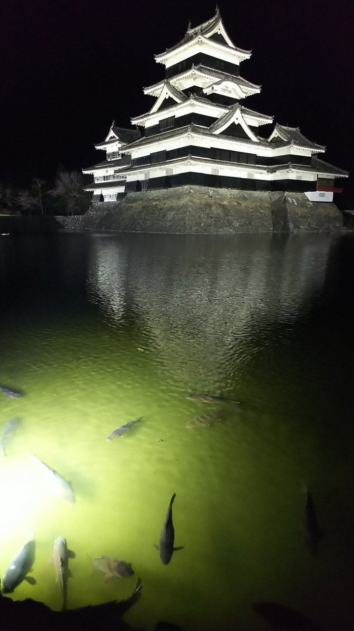 今回は桜に城を目当に行ったのですが、寸前の寒波で桜が遅れてまだまだ開花したばかり。美しい枝垂れ桜も見ることはできませんでしたが梅の花も見れたし、静かな夜の幻想的なライトアップも見たのでそれなりに満足。桜の満開に重なるとそれどころではなく混雑の中で城の急な階段も危なくて私には登れないかもしれなかった。夜散歩していると欧米人の多さにビックリ。松本はよその観光地に比べて韓国、中国人よりも欧米人が圧倒的に多いのはお城のせいなのでしょうか
