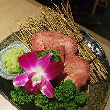 サラダ、お肉の盛り合わせと厚切り牛タン、お肉の握り等をオーダー。