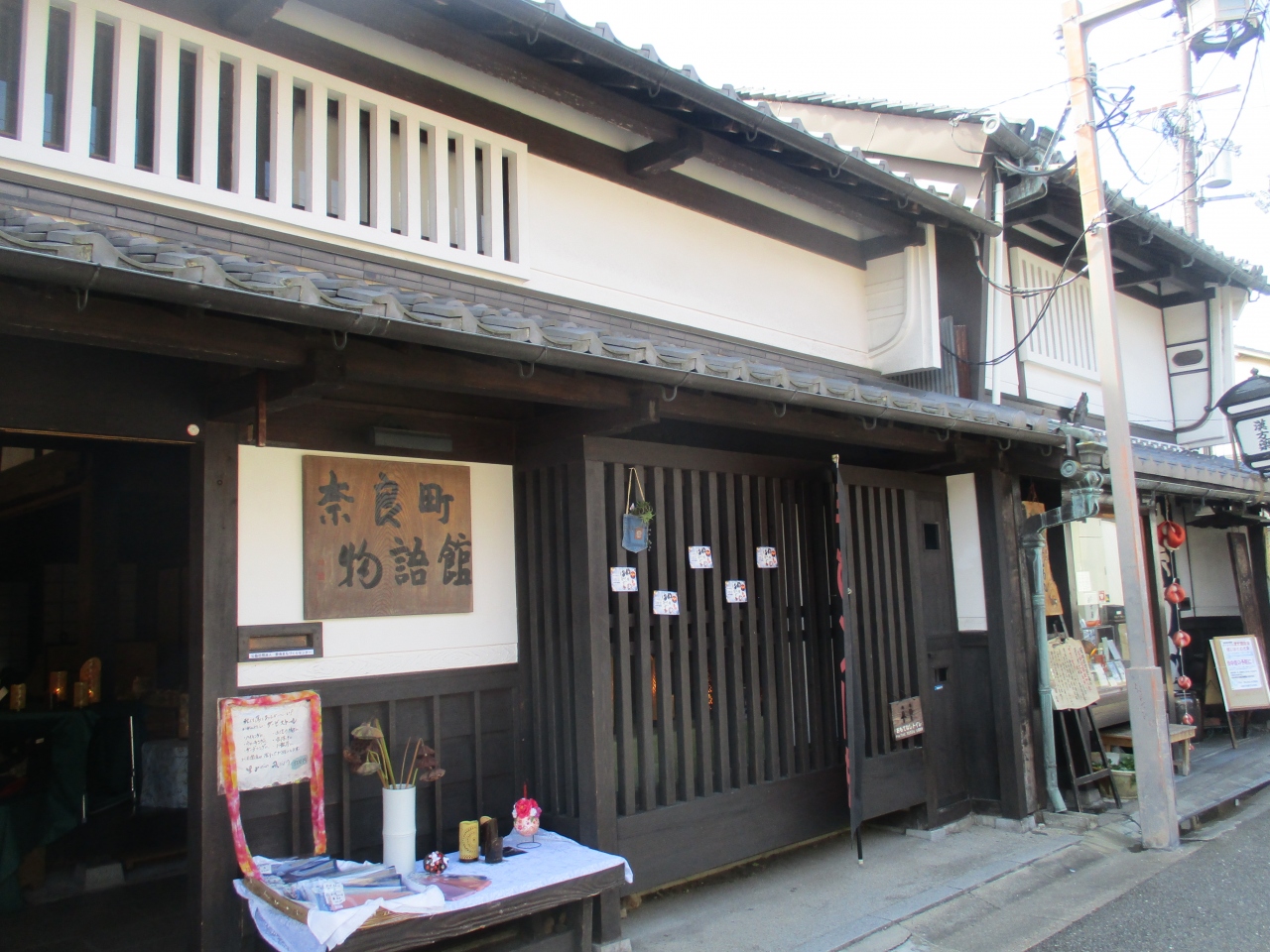 この界隈は、ならまちの中心にあたり、1Fがこげ茶の壁で、その少し上が白壁で虫窓が付いているというならまちの典型的な建築物が並んでいます。この物語館もそのひとつで入場料無料です。ただ物語のコンセプトがいまいちわかりにくかったです。ここにはお手洗いがありました。
