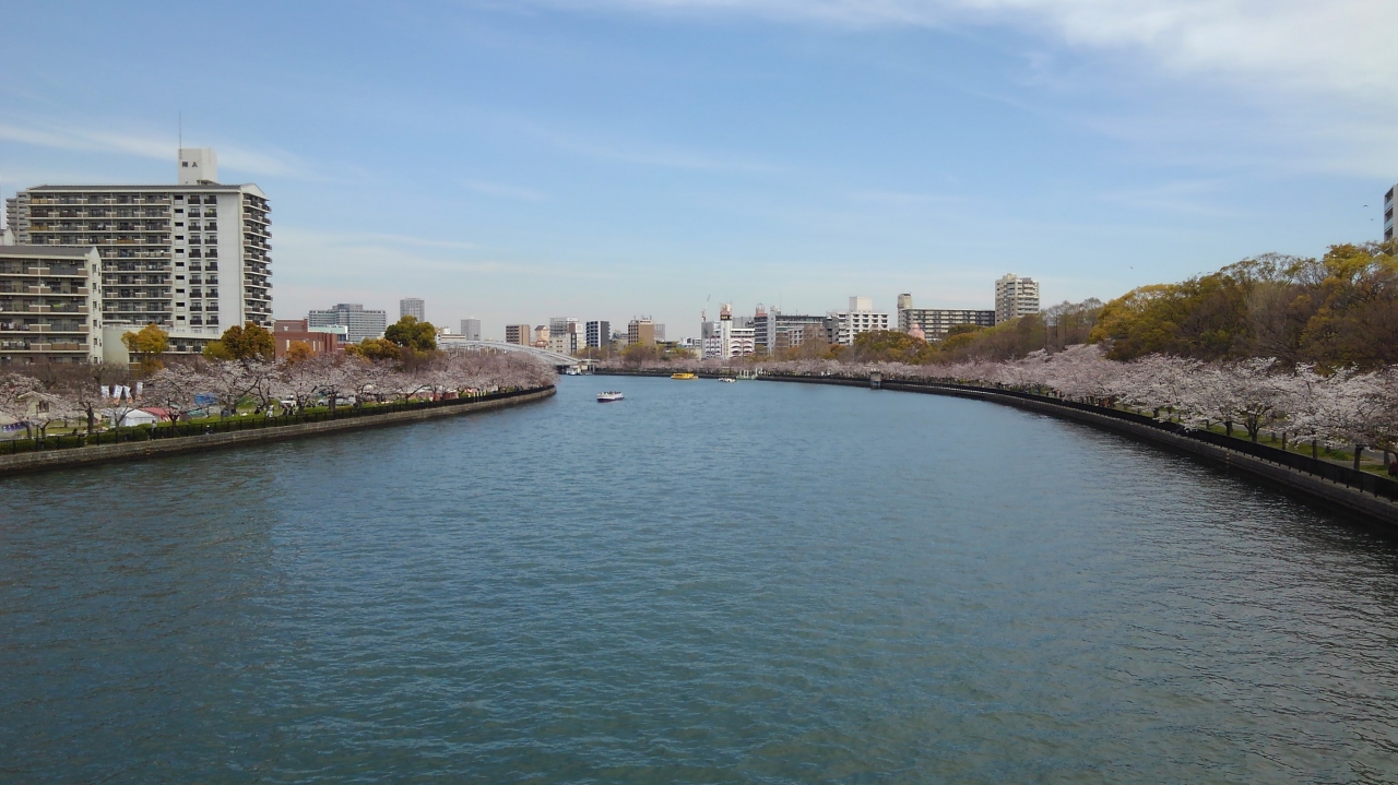 また、大川とのバランスも良く、美しい桜は川に映え気持ちよく天満橋にたどり着きました。