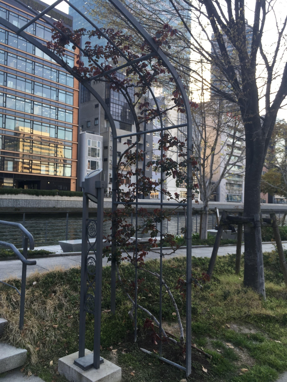 中之島にある中之島バラ園。今は残念ながら薔薇の季節ではないので、バラの花はまったくありませんが、大阪では貴重な緑地帯で木々も多く、しかも、車も入ってないし、歩道もゆったりしていて散歩にはとてもいい場所です。