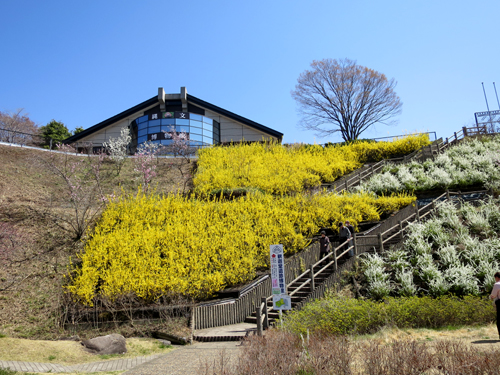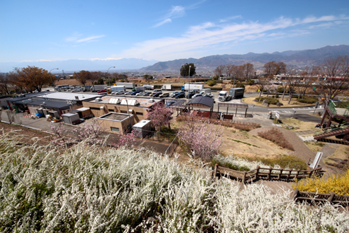 パーキング内の階段を登ると、「釈迦堂遺跡博物館」に繋がっていたり、周囲を見渡せる展望台っぽい場所もあったりして、景色も楽しめるパーキングエリアです。