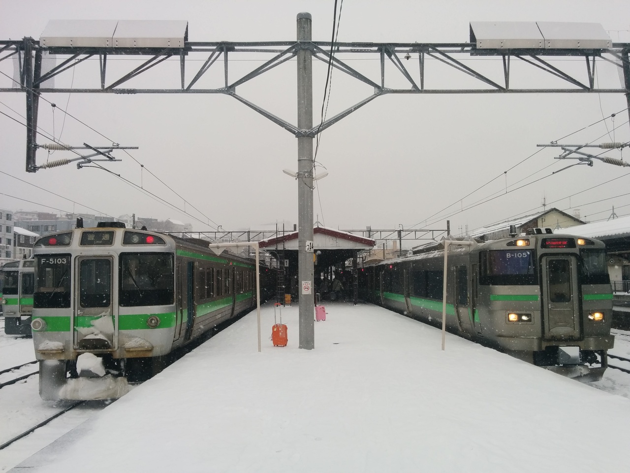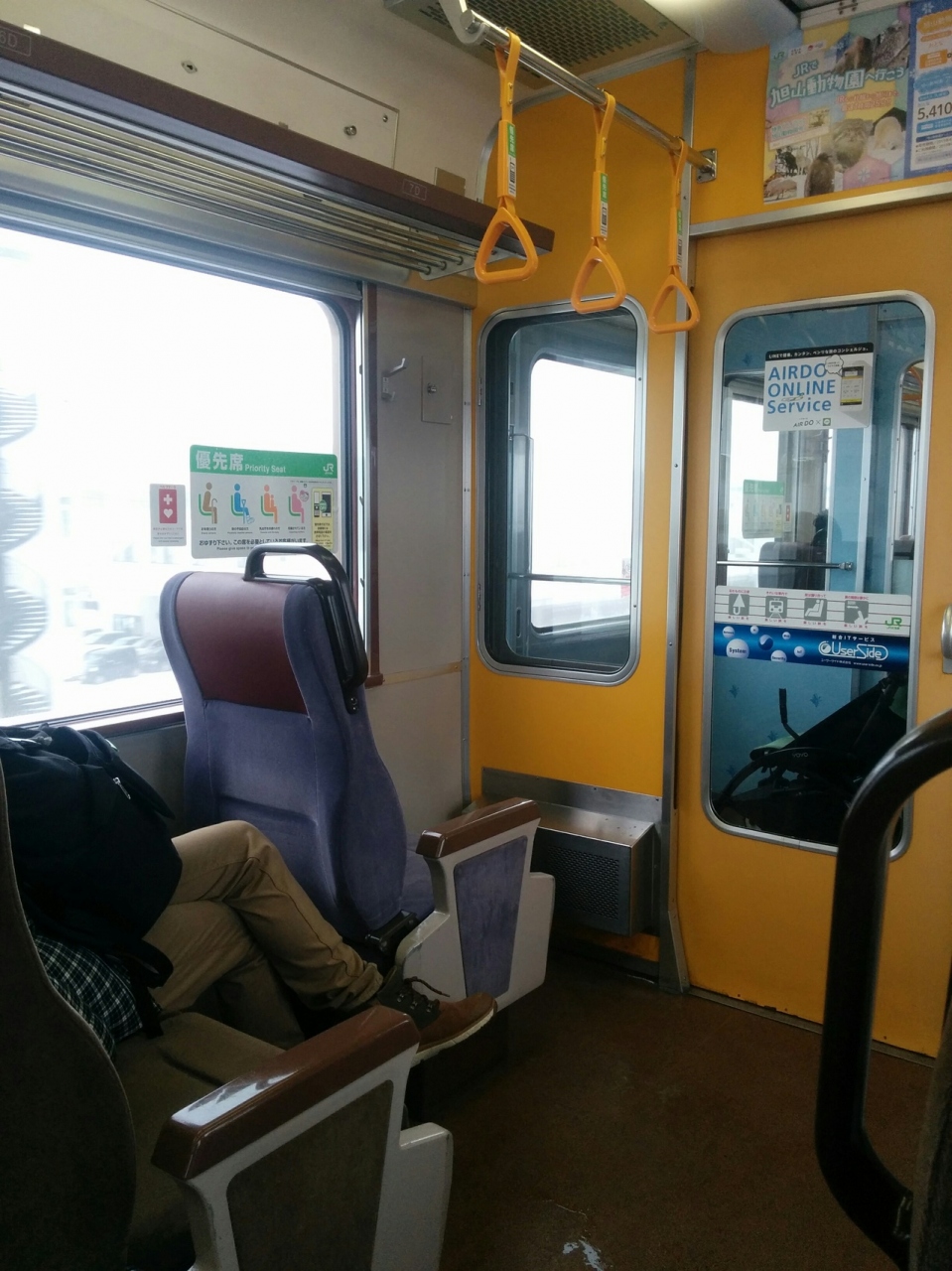 みなさんこんにちは、ふとももぷるぷるです。平成30年12月12日にJR北海道のいしかりライナー札幌発12:28札幌ー小樽間に乗車しました。今回のいしかりライナーは、北海道を代表する列車721系後期投入車両でした。クロス転換シートで進行方向向きでしたので快適でした。