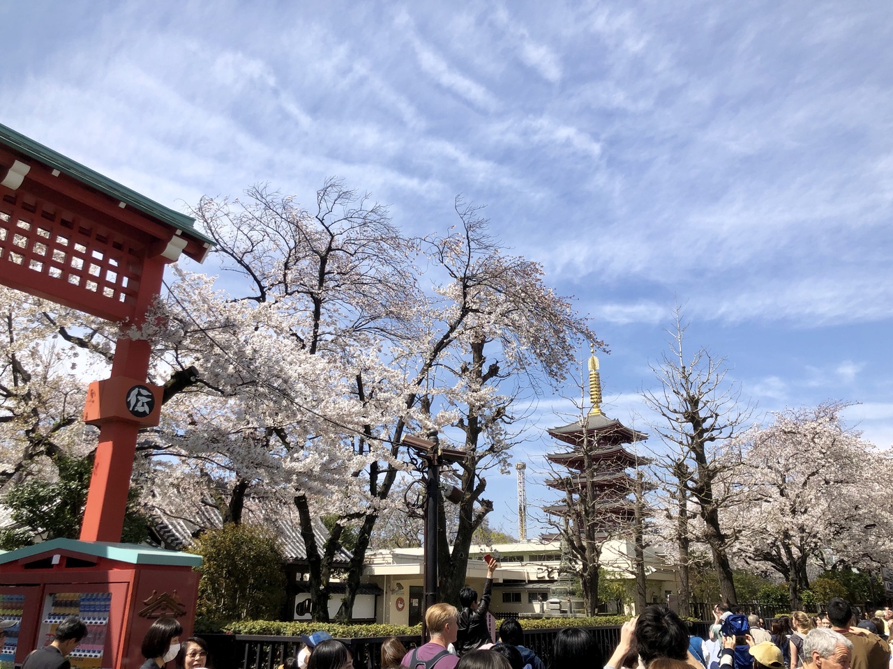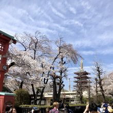 でも途中、浅草寺、五重塔をバックに桜が見えるアングルではこちらも撮影してしまった。