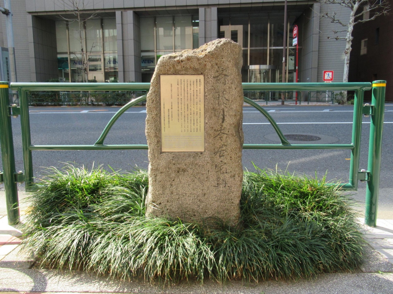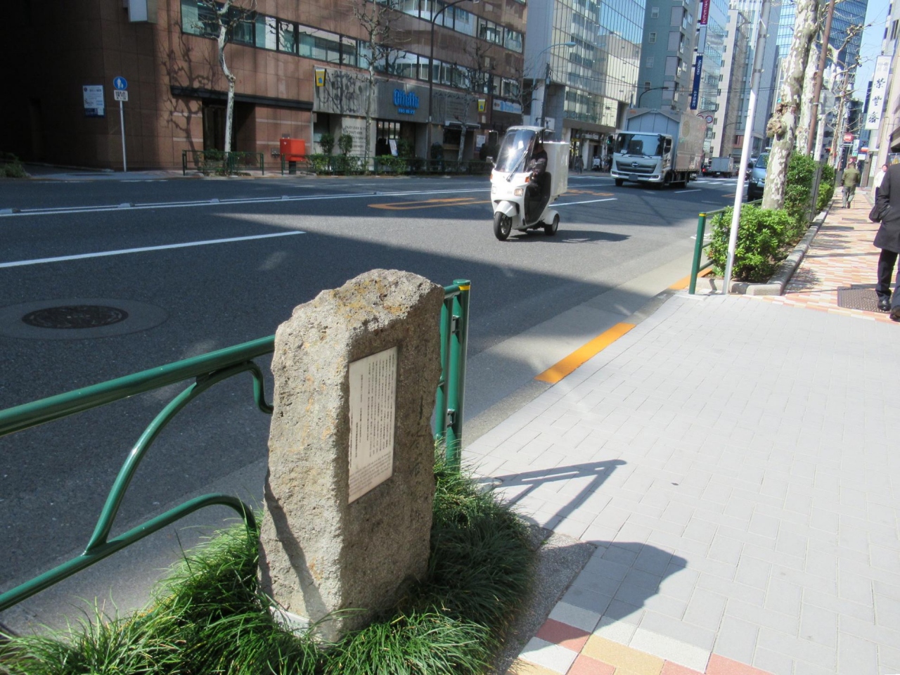 - 大きくはないが江戸城外堀跡の石垣の一部を使った立派な顕彰碑です