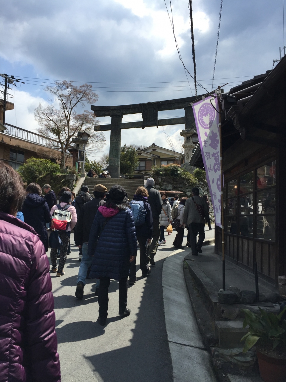 まっすぐ進む道と階段を登って鳥居を通るのと選べます。