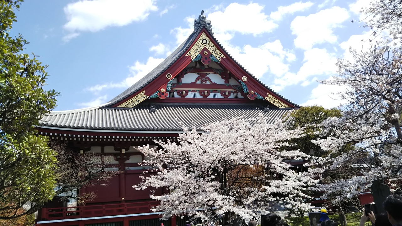 何度か浅草寺には行ってますが、さくらの季節は初めてでした。本堂とさくらの組み合わせがきれいでした。平日の昼時でしたが、日本人もインバウンドも大勢の観光客が来ていました。納経所にもインバウンドの姿がありました。御朱印は10分待ちました。