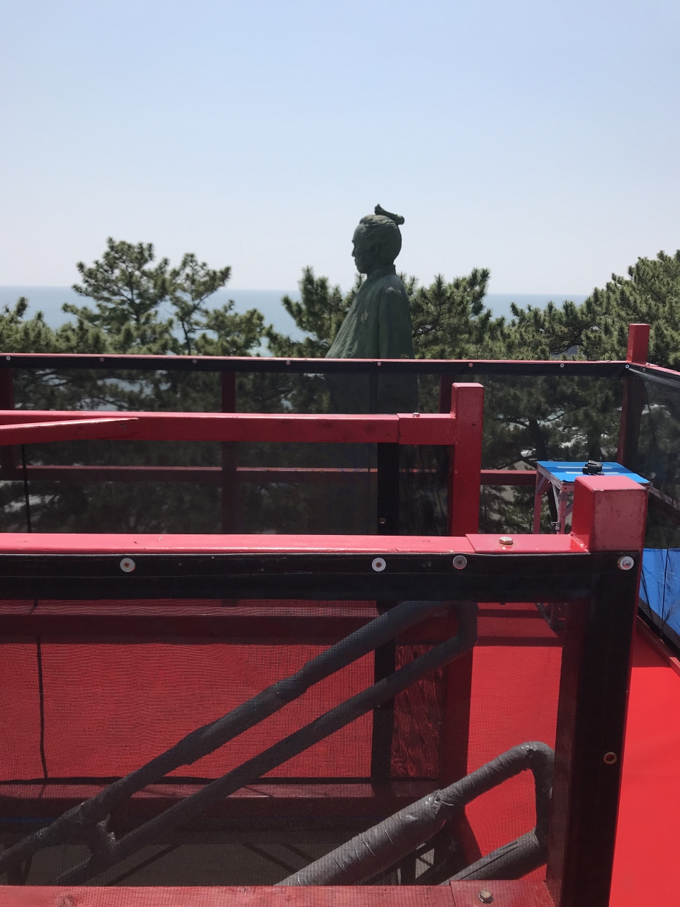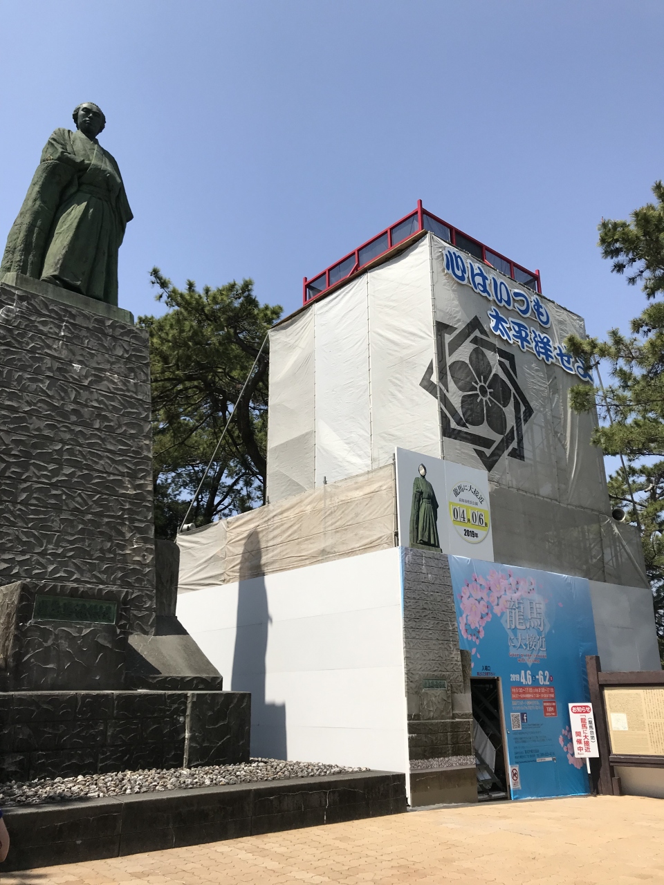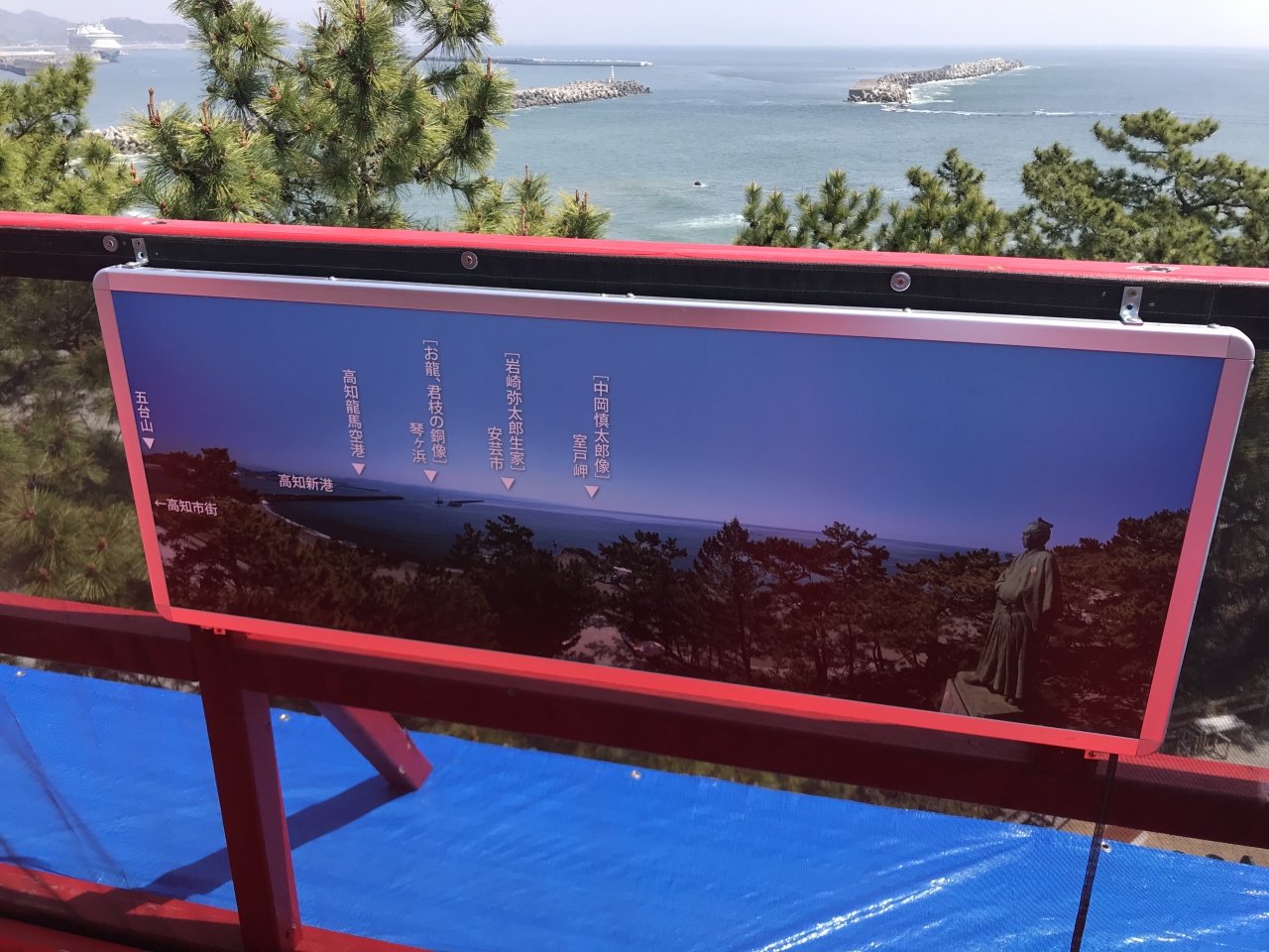 ちょうど、「龍馬に大接近」という企画が開催されていて、龍馬像の隣に設置された特設展望台から像を間近に見ることができました。展望台は、龍馬像と同じくらいの高さなので、龍馬の見る視線の高さで、景色を望むことができます。展望台は有料で、入場料は100円でした。