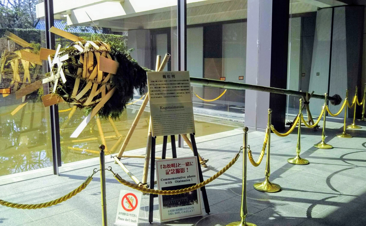 展示室内は撮影できませんが、1階のフロアに展示された「籠松明」だけは撮影でき、