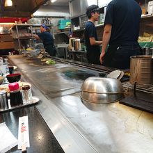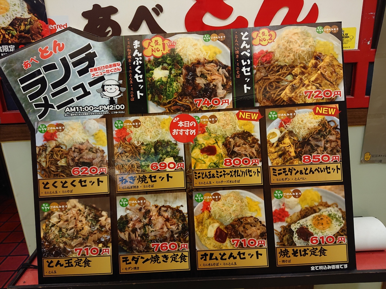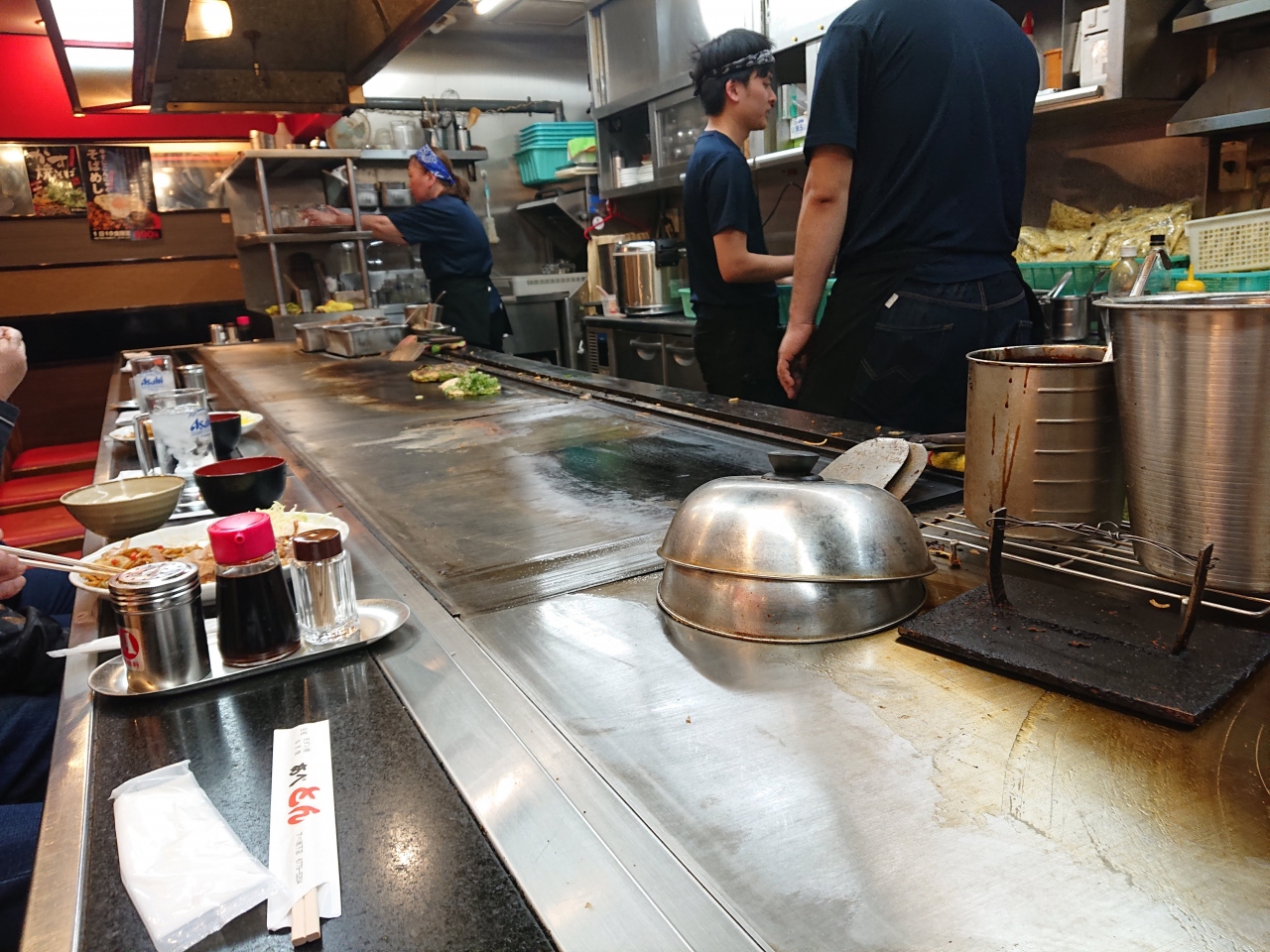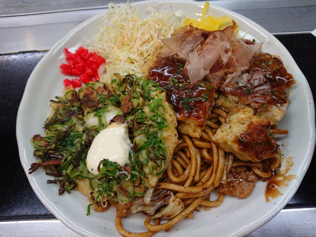 人気ナンバーワンだという、ミニネギやき、ミニとん玉、ミニそばのまんぷくセットを頼むと、カウンターの向こうから、大・中・小?