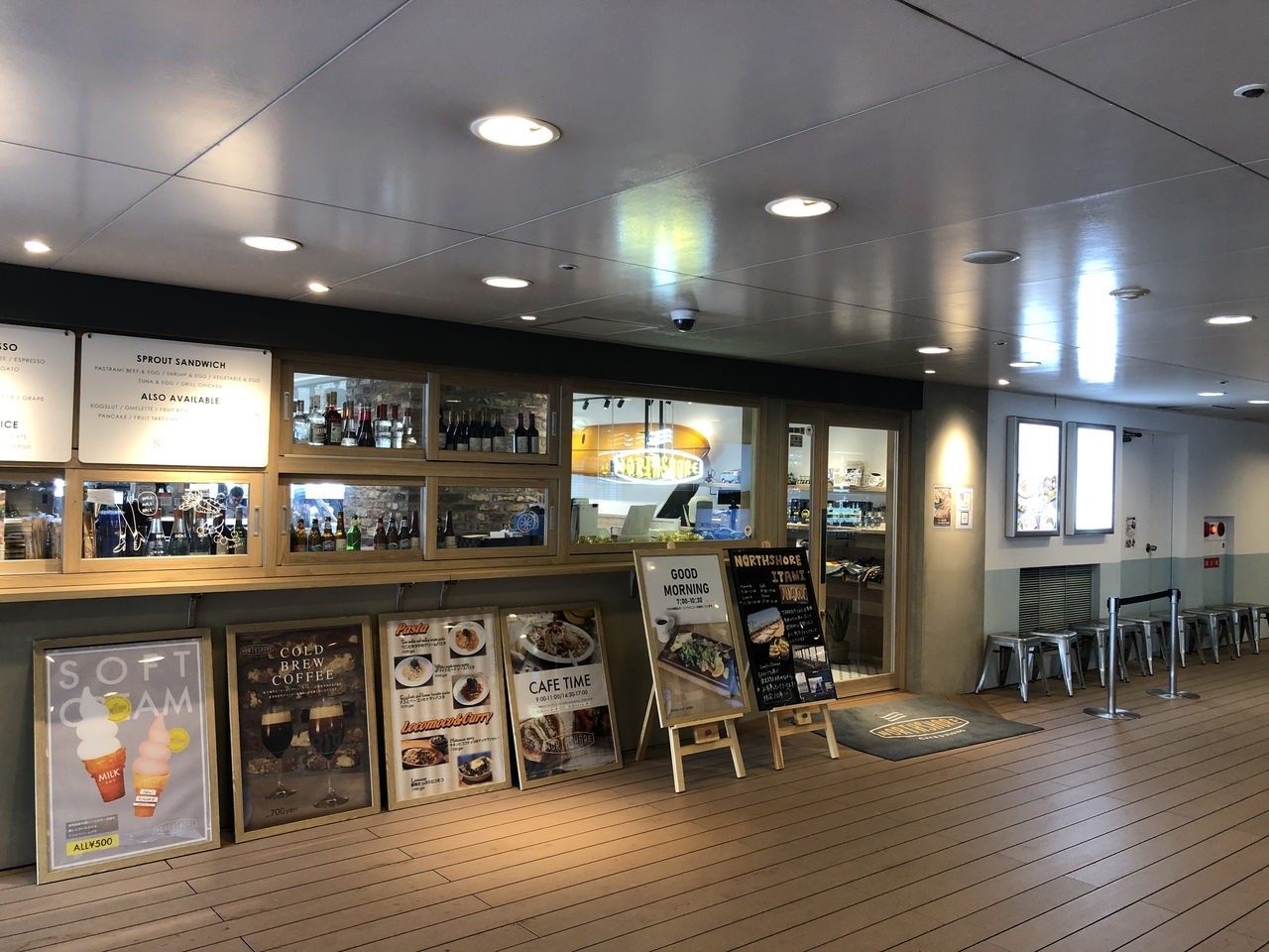 伊丹空港ビル4Fのノースショア カフェ&ダイニングで朝食をいただきました。このお店は4Fの中央あたりにあるので、ANAの搭乗手続きの南側から少し距離があります(JALの北側からも同様と思います)が、朝7時からopenしているのがいいですね。