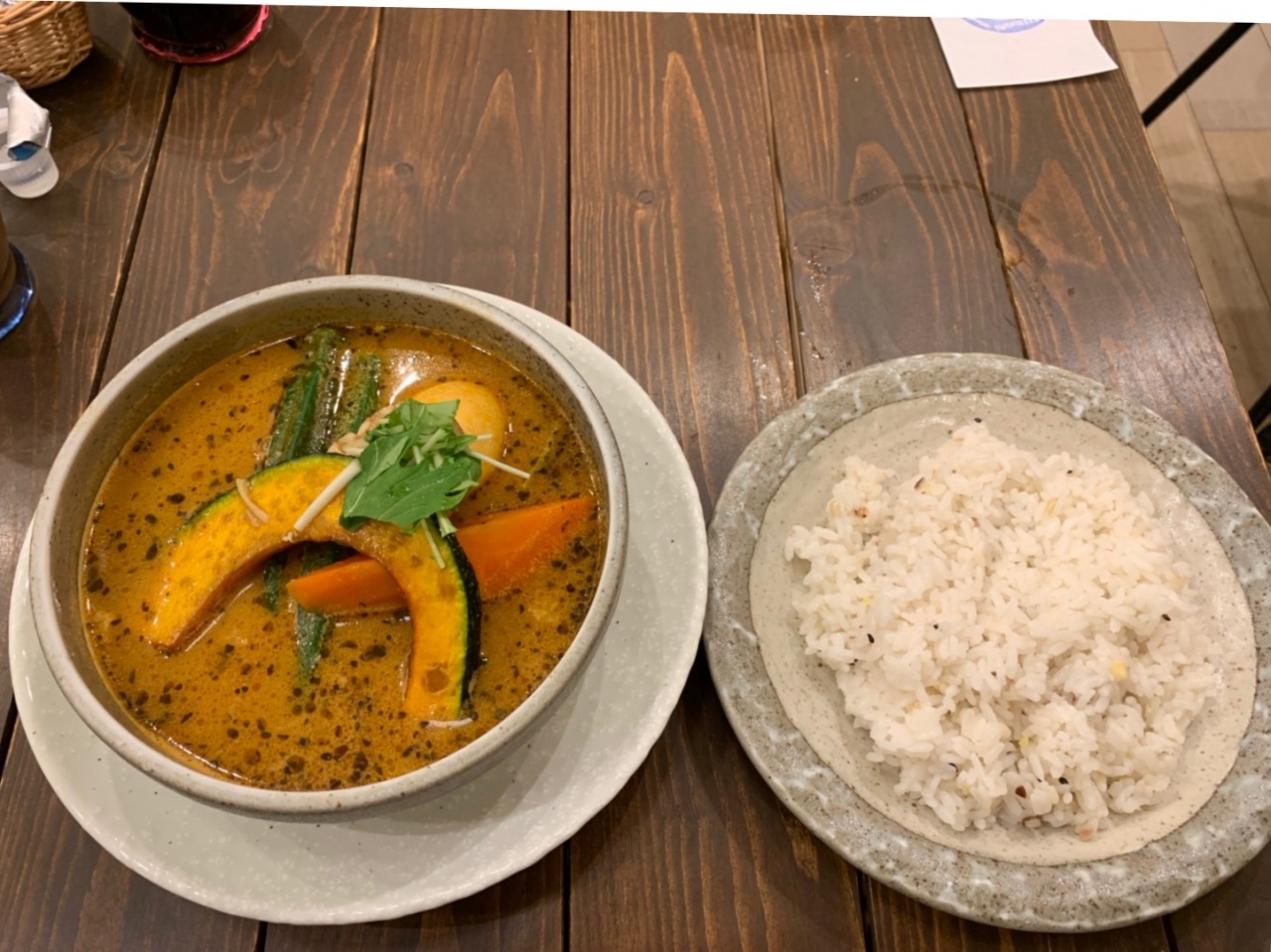 新札幌のサンピアザ(地下2階)にあるスープカレーの専門店です。明るく綺麗なお店でした。スープカレーは、4種類のスープと具材を組み合わせることができますが、チキンカレーはランチタイムなら無料でドリンクが付くと聞いたのでチキンカレーを食べました。スバイシーでしたがチキンも柔らかくて、野菜もたっぷりと入っており、クセになるような味わいで美味しかったです。