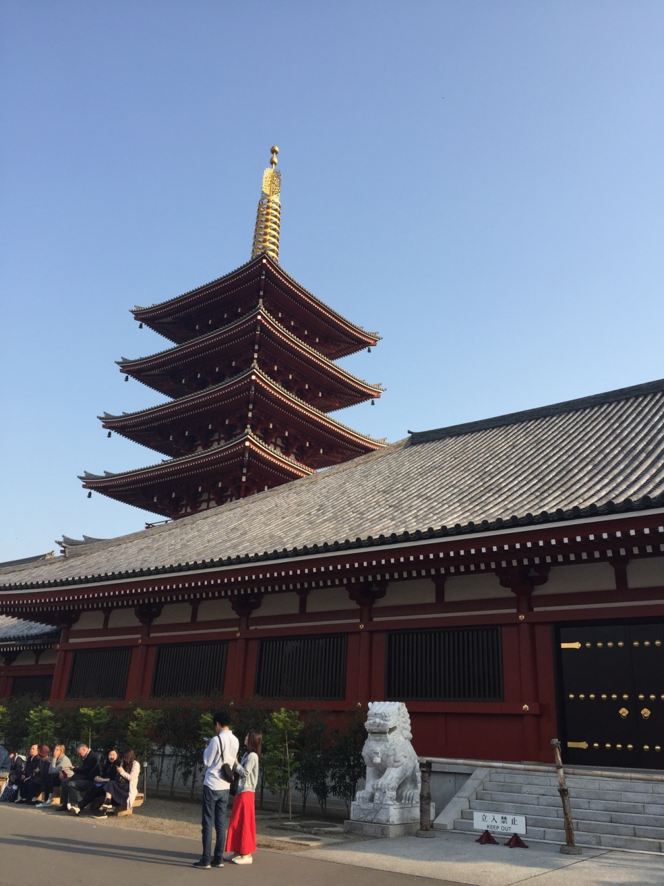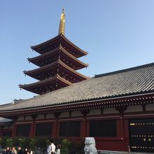 浅草寺の本堂の近くに建っている五重塔は、境内の外からもよく見えるのでよい目印になりました。昔はもっと古そうなイメージだったのですが、近年修復されたのか今はとても鮮やかできれいでした。残念ながら中に入ることはできないようです。