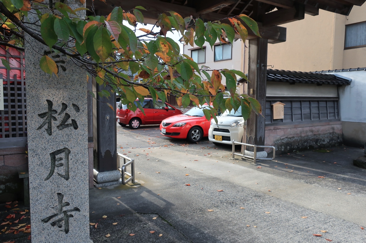 寺町寺院群にあるお寺だ。1593年の創建で、金沢、富山などを転々とし、1615年に現在地に移転したという。そのころに植えられたのか、境内には樹齢約400年の桜の木が。住民から大桜として親しまれている。この桜はショウゲツザクラといい、1933年8月に国の天然記念物の指定を受けた。訪ねたのが秋だったので花見はできなかったが、タイミングが合えば足を運びたいような桜だ。