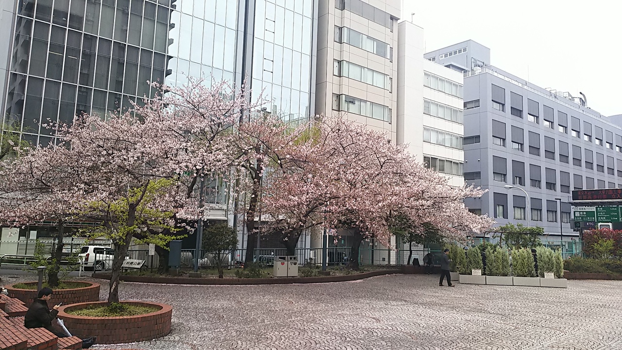 この土日に満開のさくらは今朝の雨と強い風で散り、公園の水たまりは花びらのじゅうたんになっています!