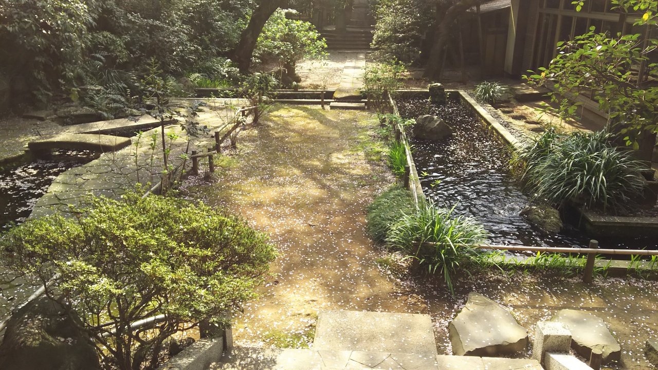 庭園も生い茂った木々のすき間から光が差し込んでいます。この茶室から見る中庭の景色はとても美しいと思います。