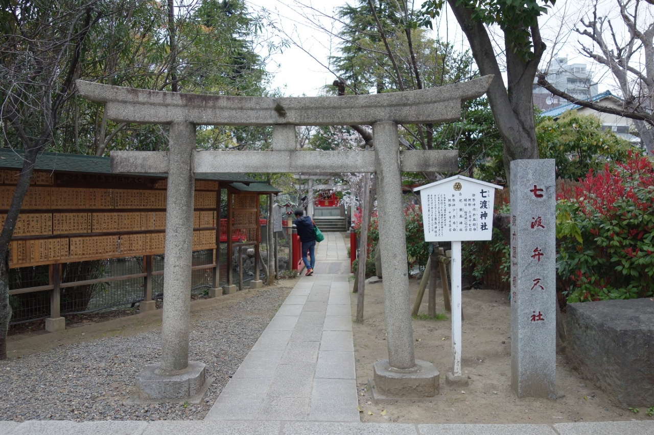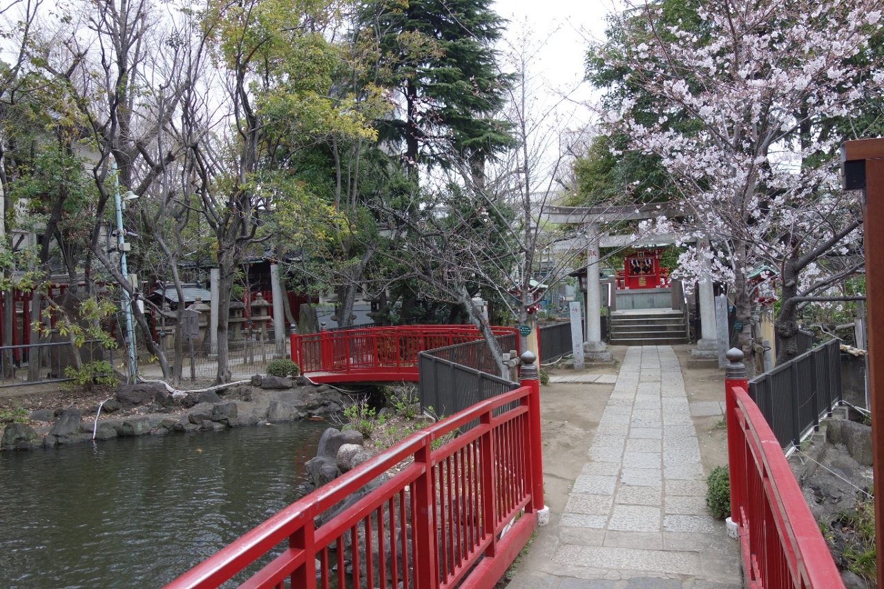 深川や木場あたりのエリアを散策中こちらへ立ち寄りました。富岡八幡宮の東側に有る池と弁天様で、鳥居を抜けて池を渡り七渡弁天者の方へ向かい参拝しました。桜が咲き若葉が美しい季節で清々しい気持ちでお参りできました。