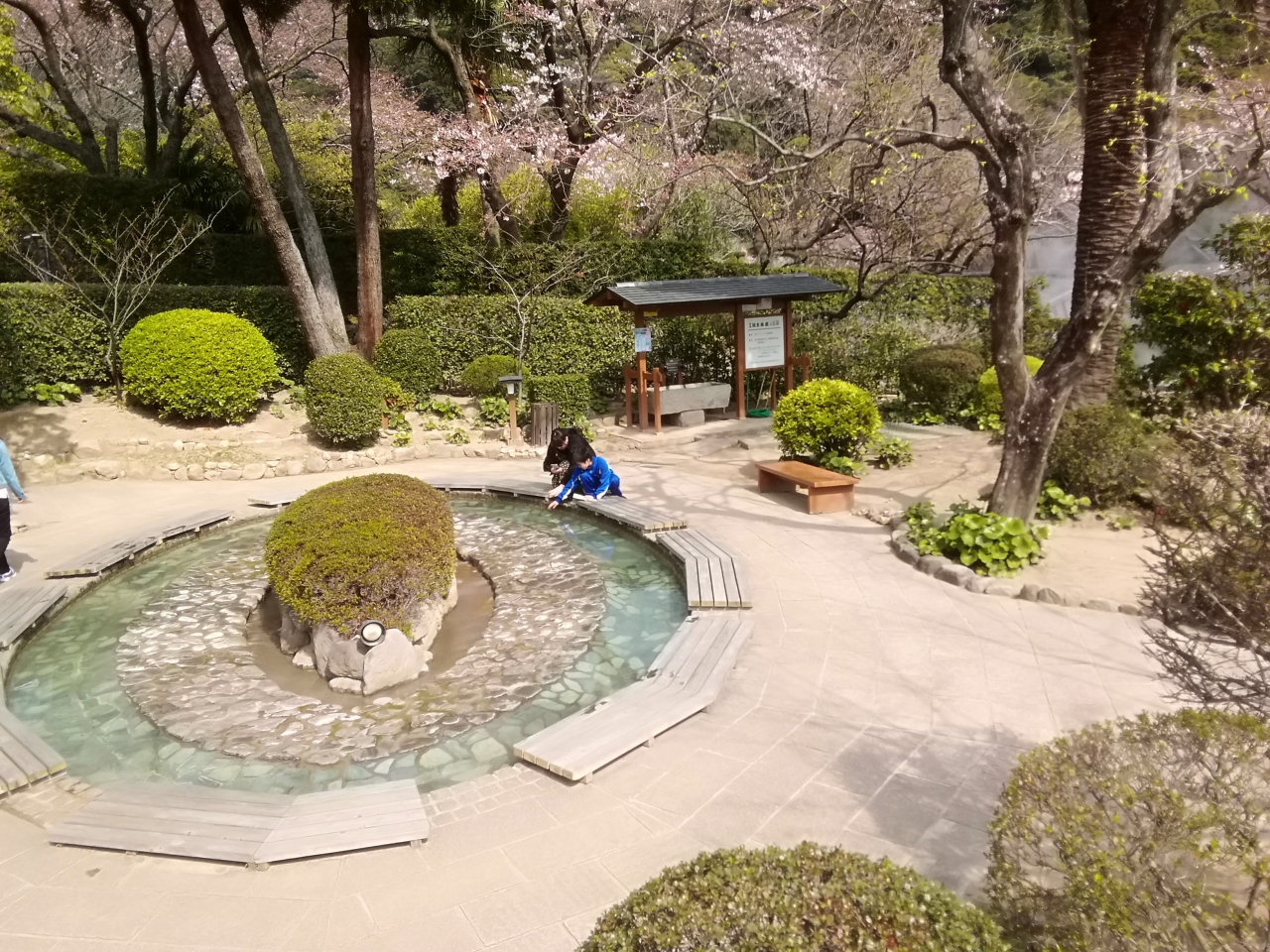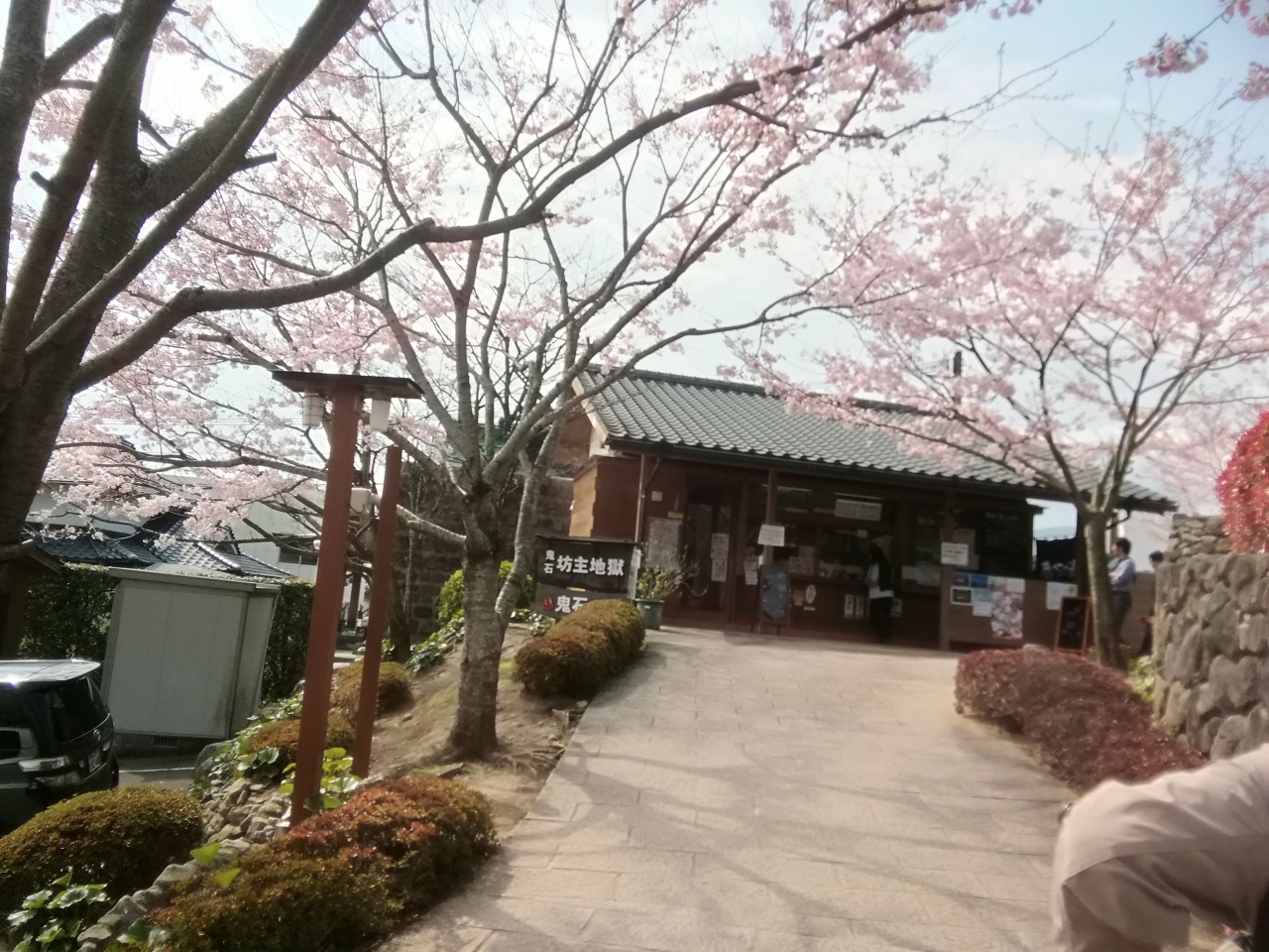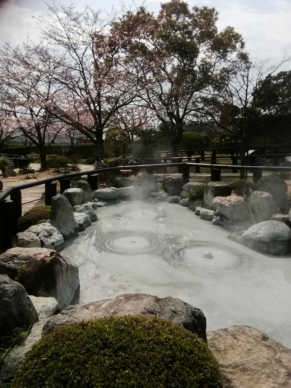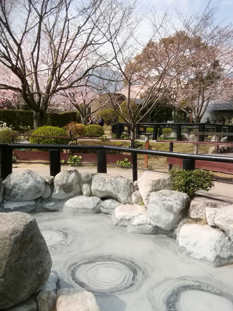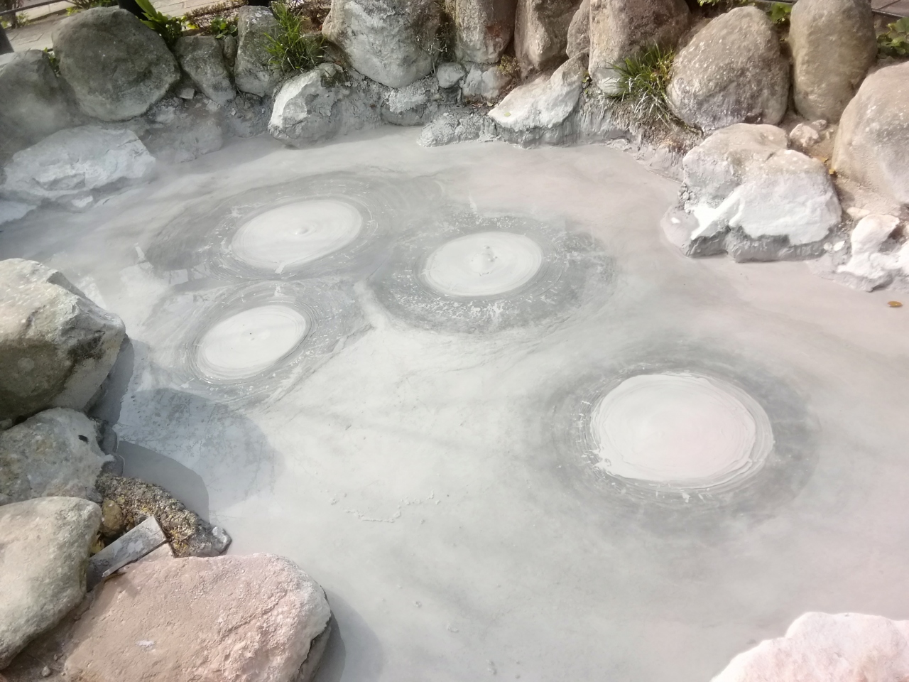 別府温泉委は2つの坊主地獄がありますが、地獄めぐりの共通券で入れるのが、この鬼石坊主地獄です。海地獄の横にあり、入口を入ると泥池から温泉が湧き出ており、灰色の熱泥が沸騰する様子が坊主頭のように見えます。足湯などもあり多くの人たちでにぎわっていました。