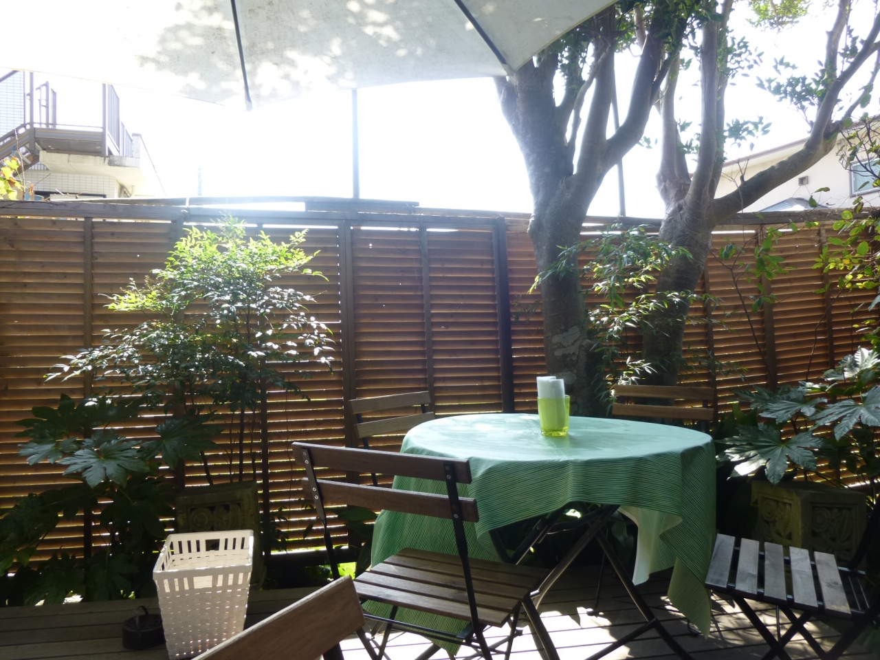 日差しが気持ちいい、お庭のテラス席に案内してもらいました。