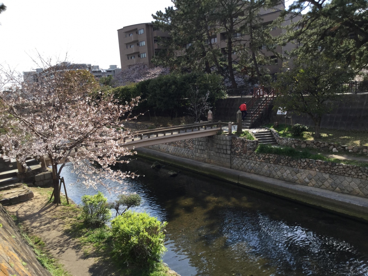兵庫県西宮の海近くから山手までの夙川沿いの続く長い道を春になると桜の薄紅色に染まります。人気の桜の名所で、電車も阪神、JR、阪急と道の途中にそれぞれ有ると言うアクセスがこんなにいい所がないと思う行きやすいのです。一番海に近い阪神電車の近くの道から少し海がわに進むと、有名な作家のゆかりの橋が有ります。ここの景色が素晴らしくて、桜に染まる橋の景色を見ていると、いつか世界の賞も有るのだと思えるのです。幼少期にこの美しい景色を見て、自身の小説にも書いた運命を持っている、そう思ってしまう程の心にしみ渡る景色です。