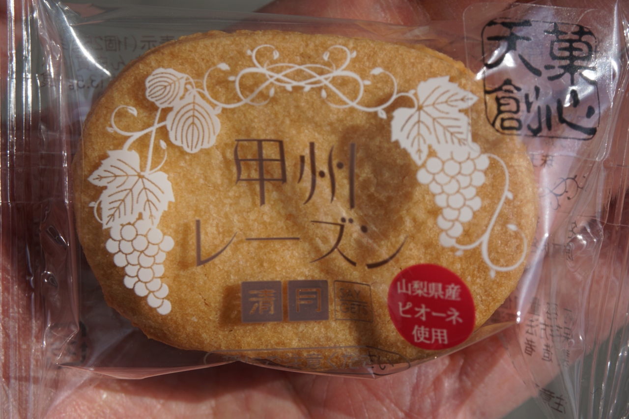 清月は、甲府の洋菓子屋さん。一番人気の甲州レーズンをいただきました。サクッとしたサブレなんですが、これに挟んだクリームと干しブドウの干しブドウは大粒のピオーネ。これはびっくりするくらい豊かな味わい。これ以上のものはちょっと考えられないくらいの仕上がりです。