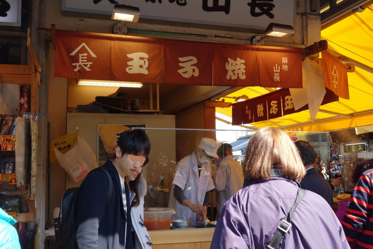 築地を訪れた際、場外市場をぶらぶらしました。相変わらず日本人と外国人観光客さんでにぎわっていました。前回ココを訪れた際は丸武さんで玉子焼きを買ったので、今回は近くの山長さんでひとり用にカットされたものを買っていただきました。
