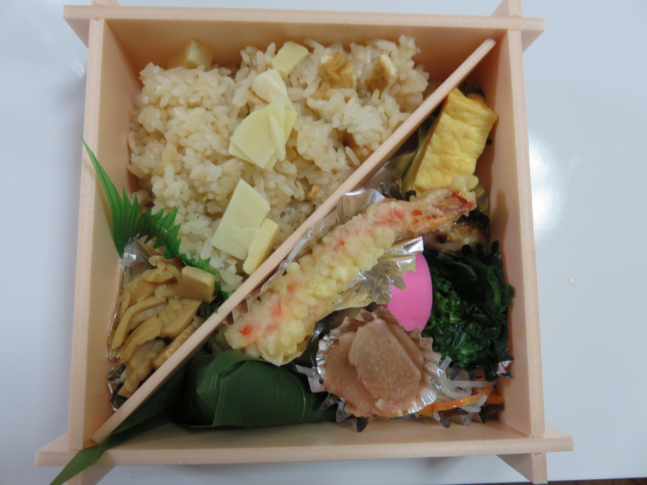 エビ天はもちろん、鰆や玉子、筍もいろんな料理があって、まさに満開のお弁当でした。